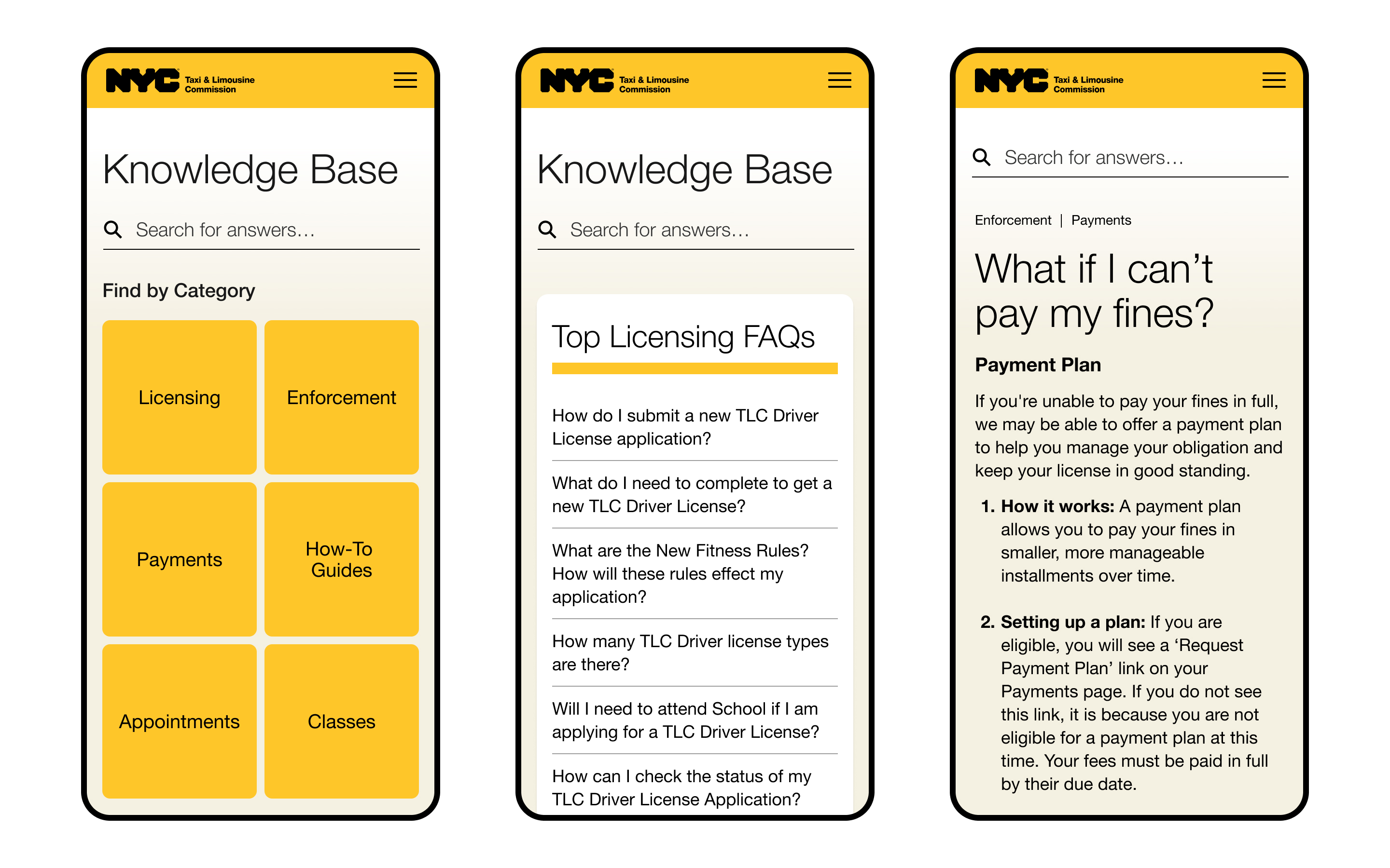 The NYC TLC, in collaboration with Tomorrow Partners and Spruce, set out to create a modern customer portal that would streamline a wide range of services for licensees. The goal was to make it easier for users to access account information, register for classes, book appointments, check application status, update records, and schedule inspections.