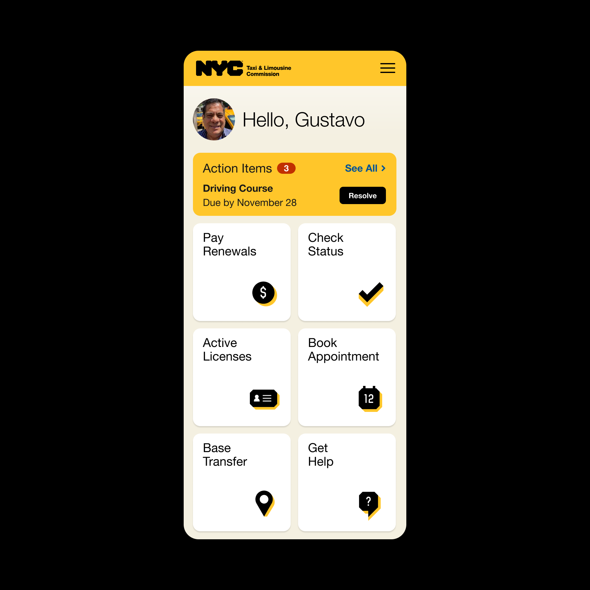 The NYC TLC, in collaboration with Tomorrow Partners and Spruce, set out to create a modern customer portal that would streamline a wide range of services for licensees. The goal was to make it easier for users to access account information, register for classes, book appointments, check application status, update records, and schedule inspections.